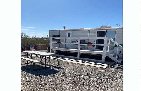 1997 Keystone sprinter, 33 foot trailer with two slide outs. Turn key. Seasonal, no full-time, adults only. Situated on a private, spacious, shared lot with one other trailer. Yearly rent is $1500 which includes five months of lot rent plus sewer, water and garbage. Located in the foothills of Yuma north side of interstate eight. Pets are OK. It has new flooring, updated bathroom, electric hot water heater, shed, carport, washer, and large deck. $10,500.